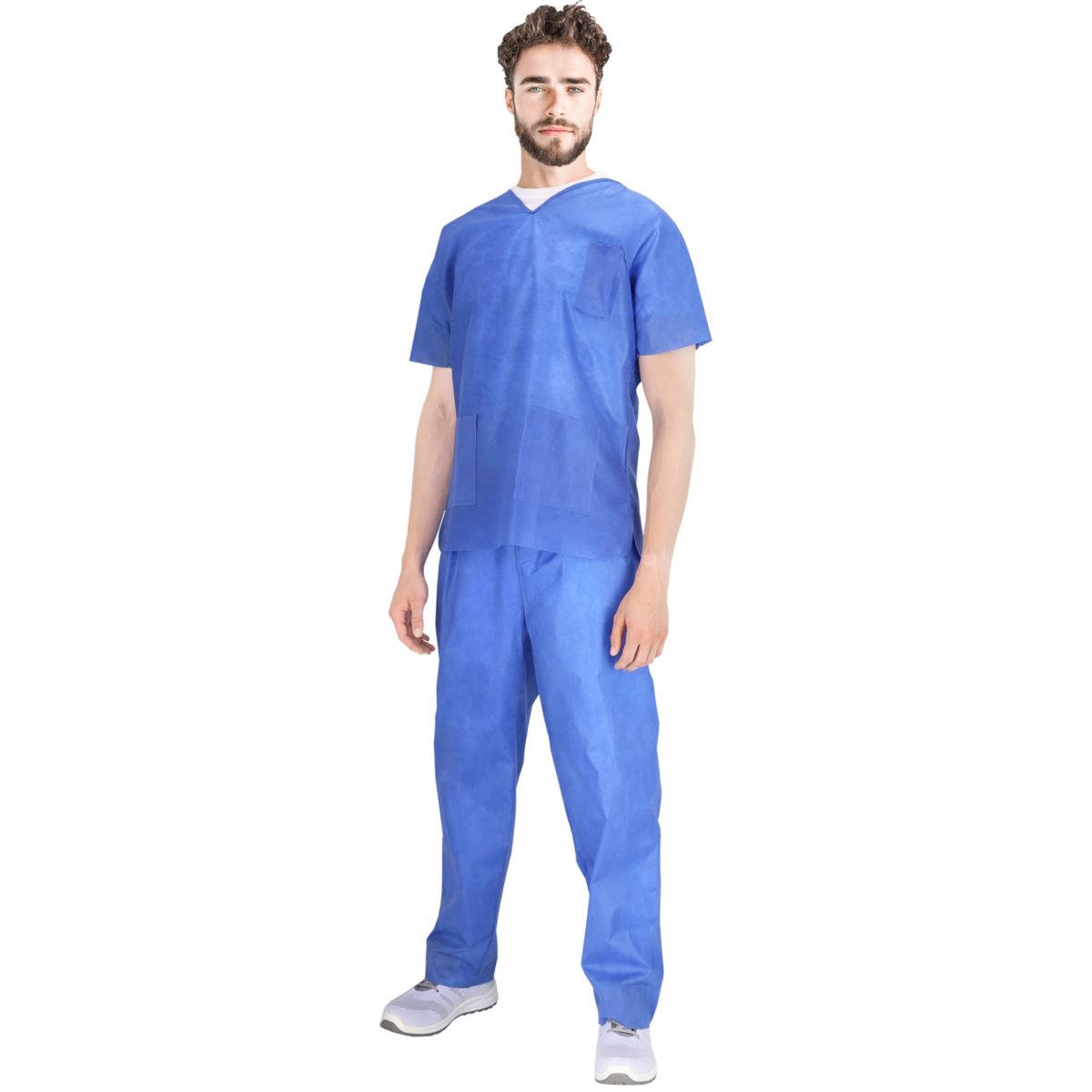 Zestaw składa się z bluzy oraz spodni do pasa, co zapewnia pełną swobodę ruchów i komfort użytkowania. Bluza posiada dekolt w kształcie V, krótki rękaw oraz trzy funkcjonalne kieszenie. Spodnie wyposażone są w wiązanie w pasie umożliwiające dopasowanie oraz dodatkową kieszeń tylną.