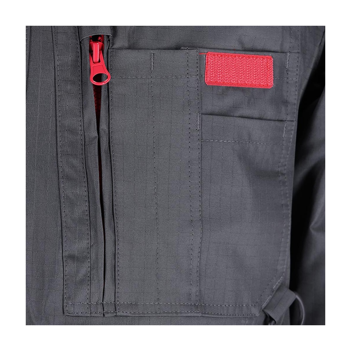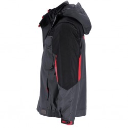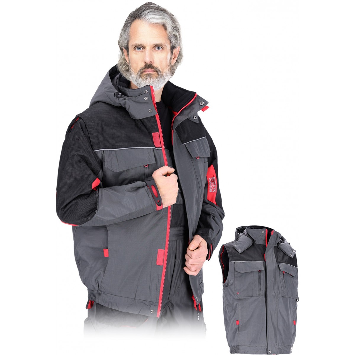 Model posiada odpinany kaptur z regulacją, liczne kieszenie z przegródkami na narzędzia i telefon, a także odpinane rękawy, które pozwalają szybko przekształcić kurtkę w praktyczny bezrękawnik.