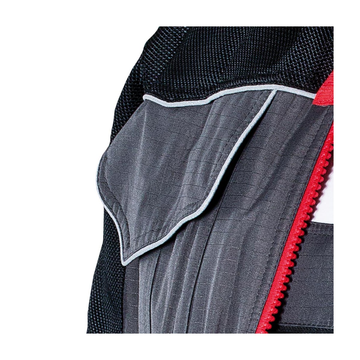 - odblaskowe lamówki przy patkach górnych kieszeni oraz na plecach zwiększają widoczność użytkownika