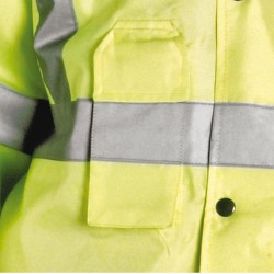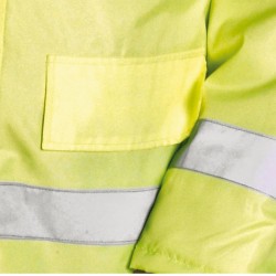 System wentylacji pod pachami poprawia cyrkulację powietrza, a pasy odblaskowe i fluorescencyjna tkanina zwiększają widoczność i bezpieczeństwo użytkownika. Liczne kieszenie i fason RELAXED zapewniają wygodę w pracy przez cały dzień.