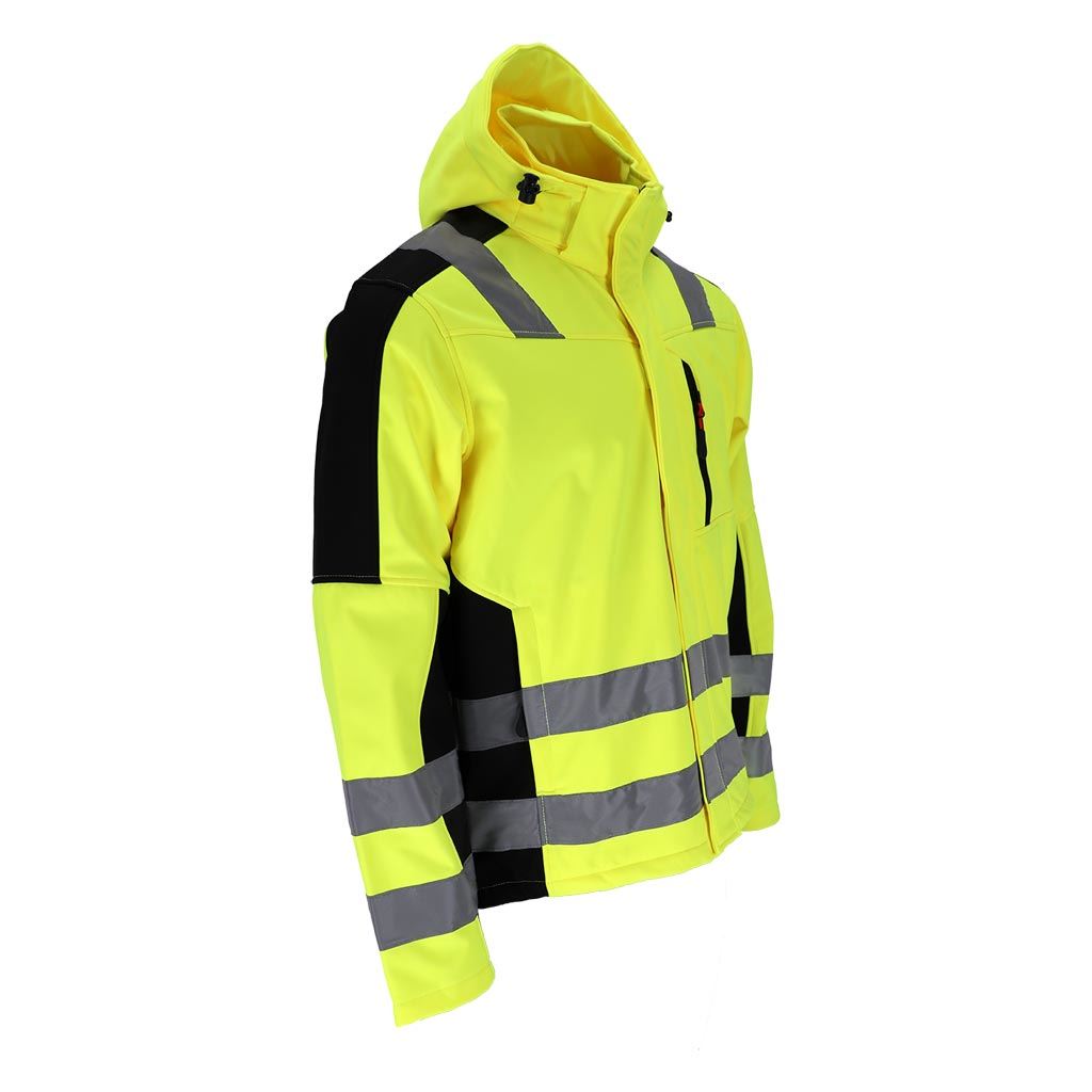Męska kurtka ochronna GLASGOW-SH softshell zapewnia niezawodną ochronę przed wiatrem, lekkim deszczem i chłodem, jednocześnie pozwalając skórze oddychać. Wykonana z trójwarstwowej tkaniny softshell z membraną TPU i polarem wewnątrz, gwarantuje wysoki komfort i trwałość. Fluorescencyjny materiał oraz pasy odblaskowe znacząco zwiększają widoczność użytkownika, dzięki czemu kurtka idealnie sprawdzi się u drogowców, służb porządkowych i pracowników pracujących w warunkach ograniczonej widoczności. Funkcjonalny kaptur, regulowany dół kurtki i praktyczne kieszenie zapewniają wygodę w codziennym użytkowaniu.