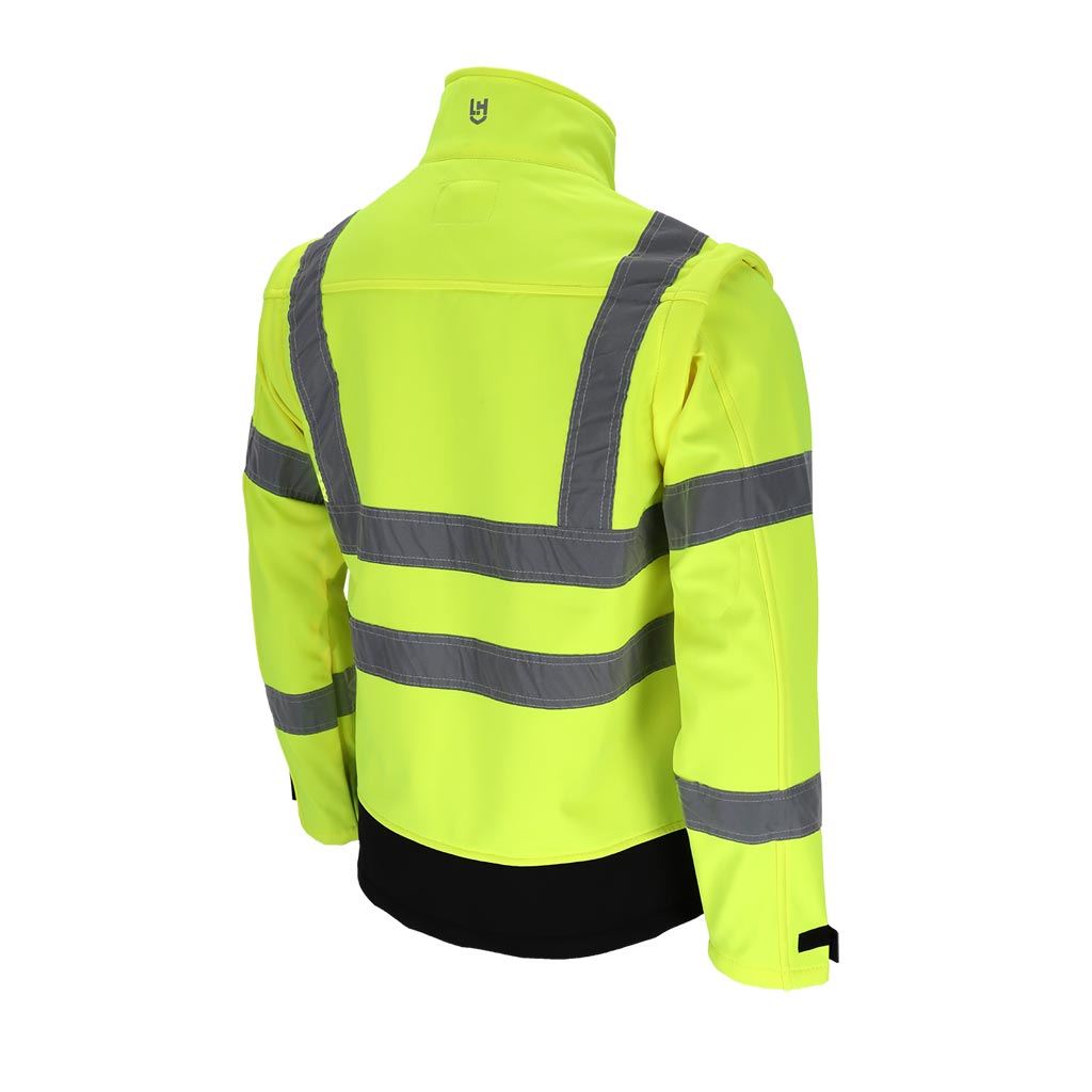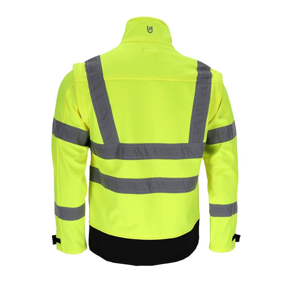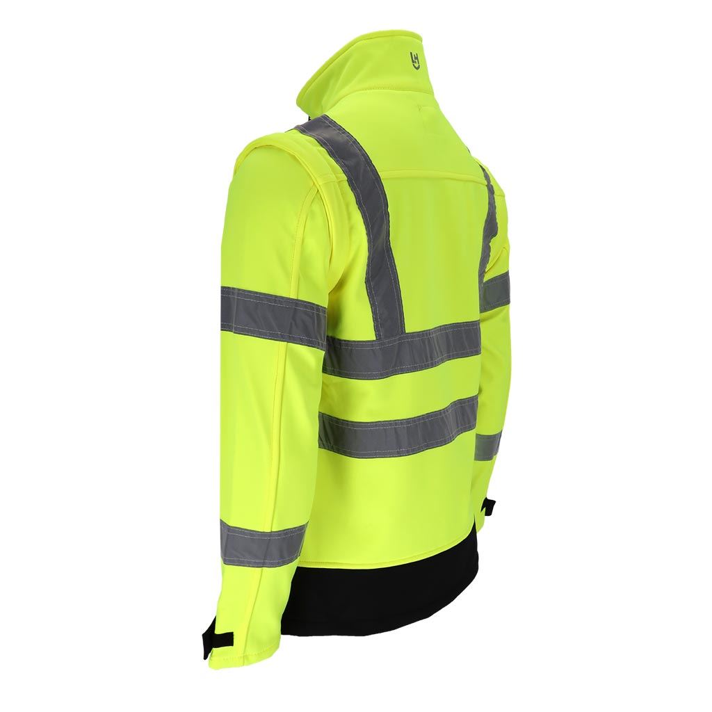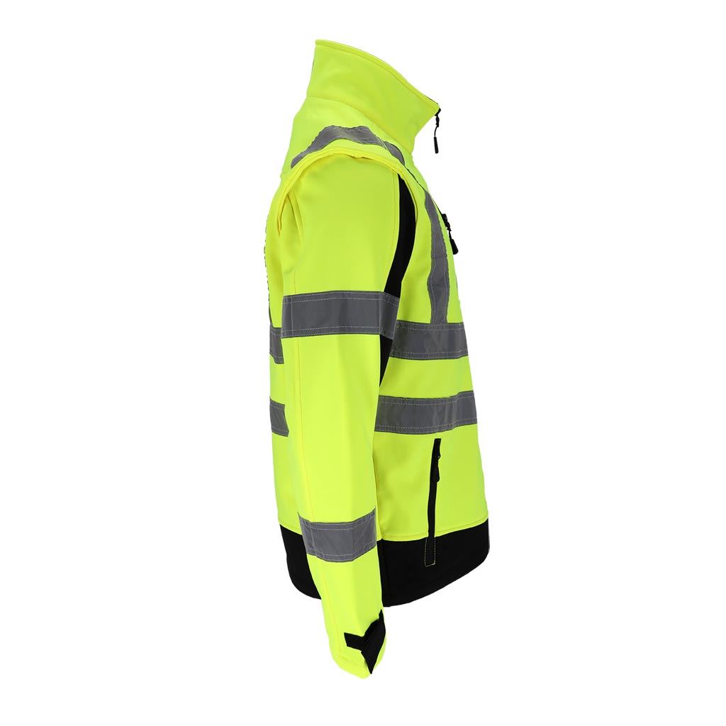 Model wyposażony jest w odpinane rękawy, dzięki czemu kurtkę można łatwo przekształcić w kamizelkę roboczą. Fluorescencyjna tkanina oraz segmentowe pasy odblaskowe zwiększają widoczność użytkownika, co jest szczególnie istotne podczas pracy przy drogach lub w warunkach ograniczonej widoczności.