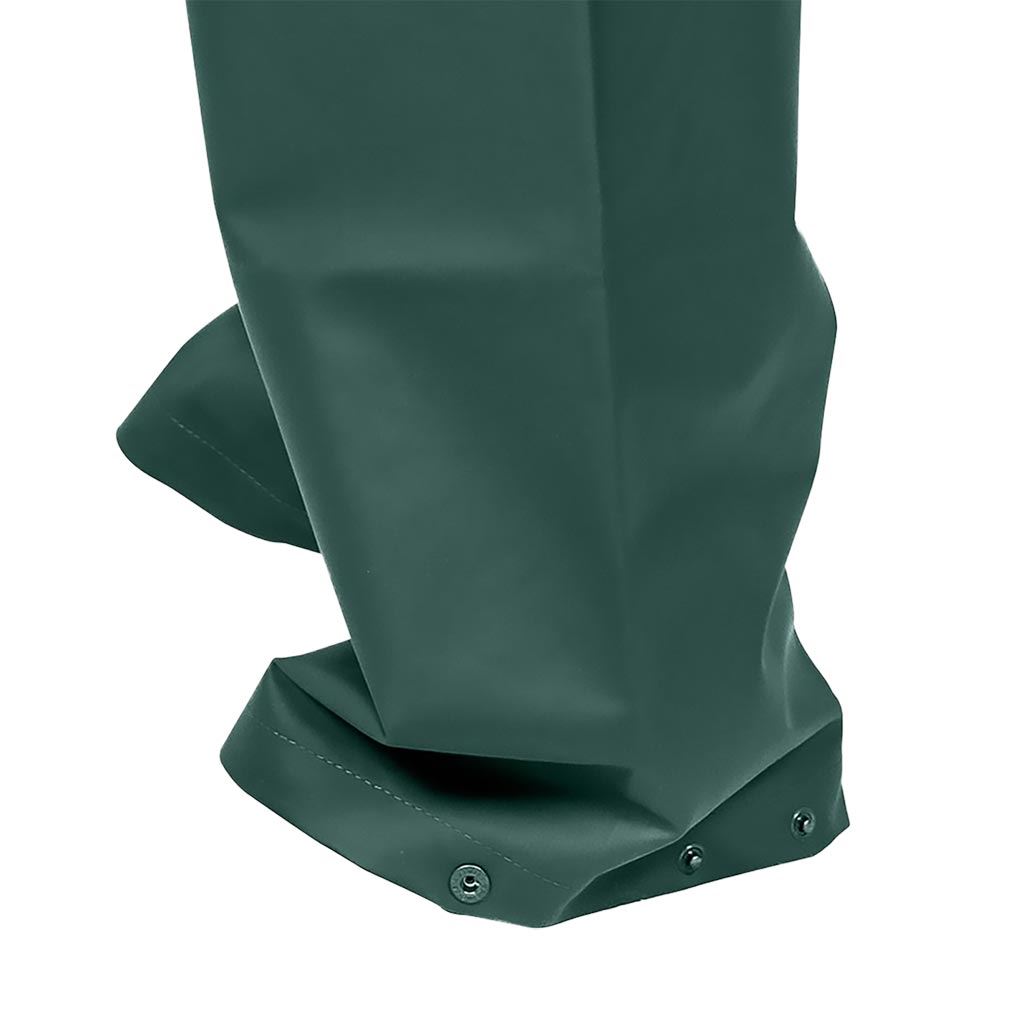 Dzięki obustronnie zgrzewanym szwom spodnie gwarantują pełną wodoszczelność, co czyni je idealnym wyborem do pracy na zewnątrz. Elastyczna gumka w pasie oraz regulacja nogawek za pomocą napów umożliwiają dobre dopasowanie do sylwetki i zwiększają komfort użytkowania.