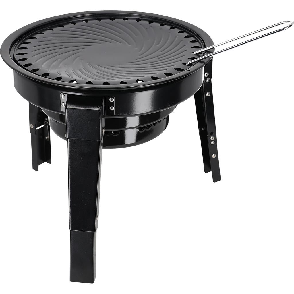 Dzięki składanej konstrukcji z wysuwanymi nogami grill jest łatwy w rozłożeniu i stabilny podczas użytkowania. Zestaw zawiera wszystkie niezbędne elementy – płytę grillową, dwa ruszty, uchwyt oraz popielnik, co pozwala na wygodne przygotowywanie potraw w każdych warunkach.