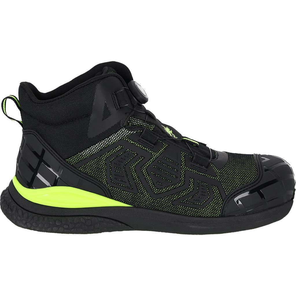 Konstrukcja trzewika stabilizuje kostkę, a zastosowany system sznurówek strunowych SPINON umożliwia szybkie i wygodne dopasowanie obuwia. Kompozytowy podnosek z włókna szklanego oraz kevlarowa wkładka antyprzebiciowa skutecznie chronią stopę w trakcie pracy.